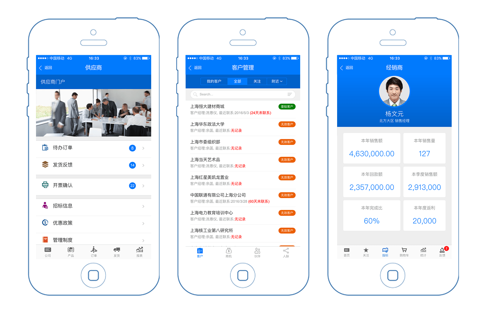 不同終端不同界面展示,支持IPhone、IPad、Android、Windows Mobile等多種智能終端。