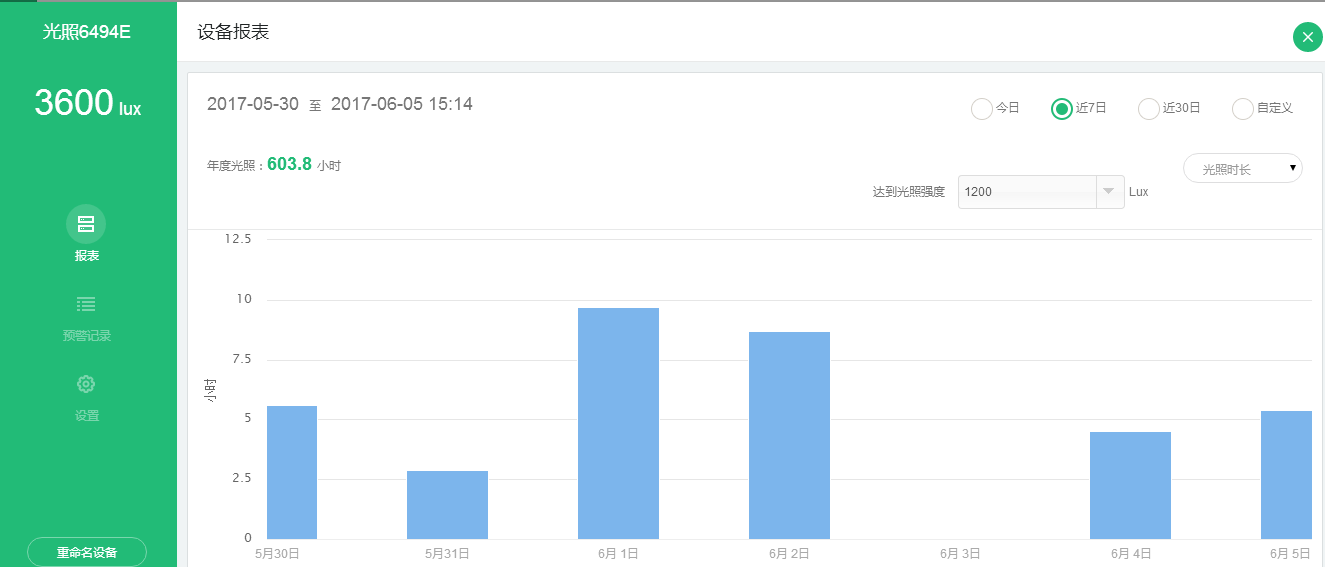 (登錄云平臺(tái)查看溫室光照)