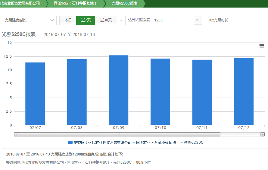 為從生產(chǎn)源頭開始監(jiān)控整個生產(chǎn)過程,保障農(nóng)產(chǎn)品品質(zhì)安全,2016年安徽同創(chuàng)現(xiàn)代農(nóng)業(yè)投資發(fā)展有限公司應(yīng)用天潤智力智慧農(nóng)業(yè)云平臺智能監(jiān)控系統(tǒng)、農(nóng)產(chǎn)品溯源系統(tǒng),利用空氣溫度傳感器、空氣濕度傳感器、光照度、土壤溫濕度、二氧化碳濃度、高清攝像頭等智慧農(nóng)業(yè)傳感設(shè)備實時監(jiān)測大棚的種植環(huán)境。并實現(xiàn)實時聯(lián)動,遠程控制大棚的風(fēng)機、卷簾與噴淋系統(tǒng)。研究所人員只要登錄手機APP或者在電腦上,就可以遠程隨時隨地查看種植基地的各項關(guān)鍵數(shù)據(jù),并且可以遠程控制大棚的設(shè)備。