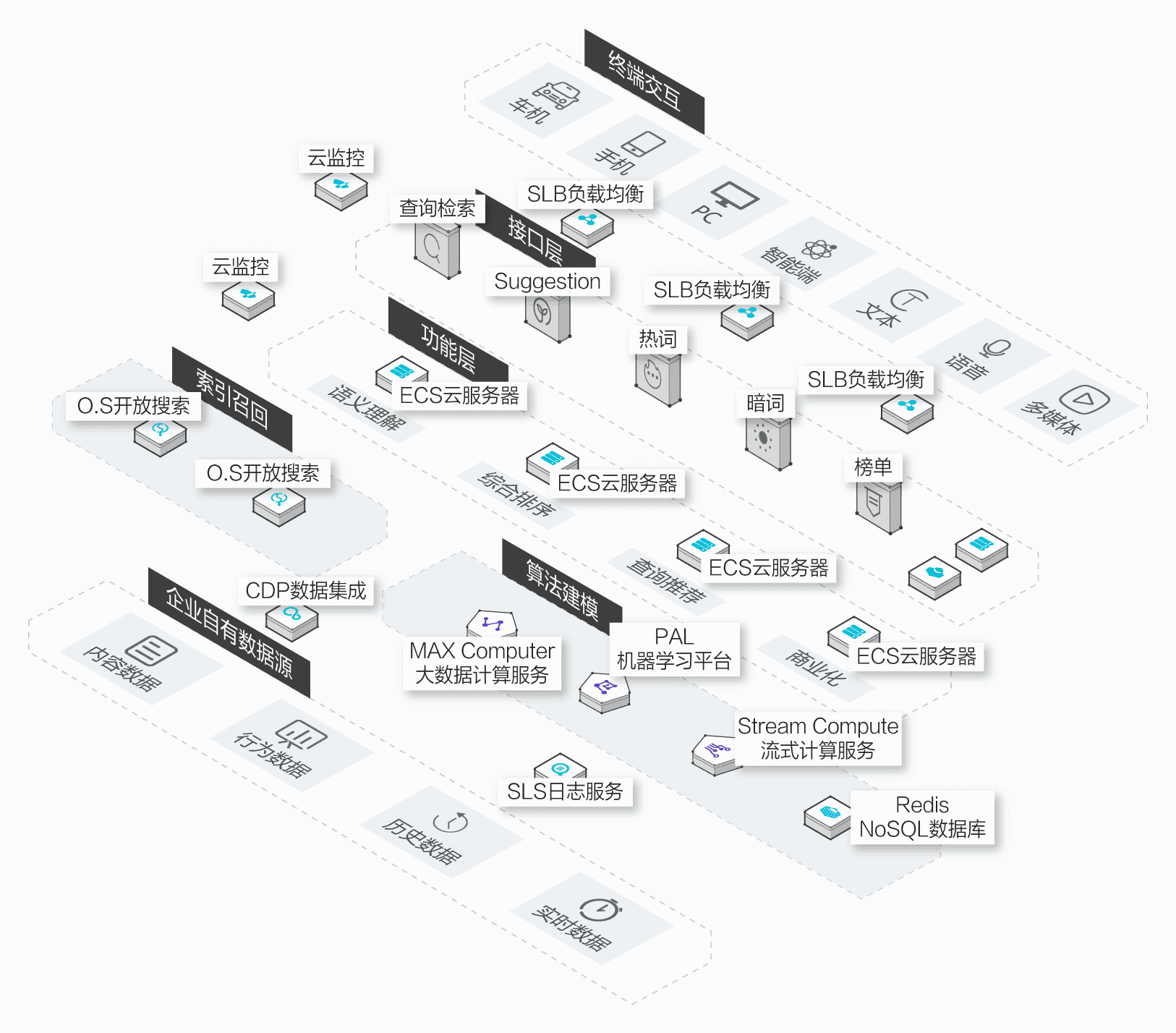多模式輸入的先進(jìn)架構(gòu)體系,提供跨域、垂直的自然搜索結(jié)果及商業(yè)化變現(xiàn)能力,支持廠商自主數(shù)據(jù)建立索引。