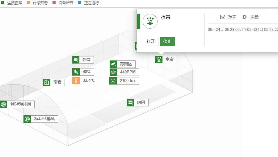 利用土壤溫度傳感器、土壤濕度傳感器、空氣溫度傳感器、空氣濕度傳感器等傳感設(shè)備實(shí)時(shí)監(jiān)測(cè)育苗中心的環(huán)境,并借助部署在關(guān)鍵監(jiān)控點(diǎn)的高清攝像頭,實(shí)時(shí)查看育苗的長(zhǎng)勢(shì)。