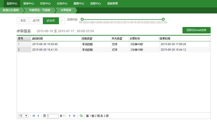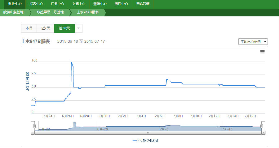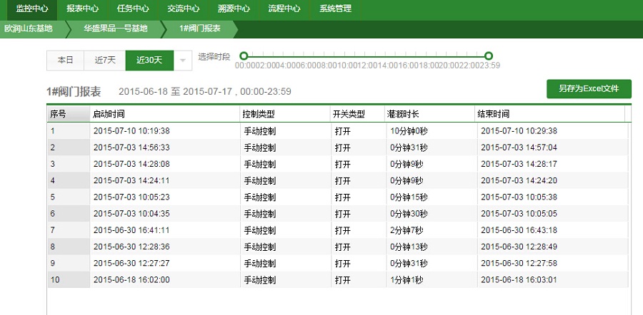 蘋果屬于需水量大的果樹,每年需要大量水分,而我國又是水資源貧乏的國家,尤其是北方地區(qū)水資源嚴(yán)重短缺,而且農(nóng)田灌溉用水占整個農(nóng)業(yè)用水的95%,因此應(yīng)用節(jié)水灌溉技術(shù)就顯得十分必要和重要。2015年6月,華盛果品承接山東沂源縣水利部農(nóng)業(yè)水價改革節(jié)水示范項(xiàng)目,引入歐潤的灌溉設(shè)備以及天潤智力智慧農(nóng)業(yè)云平臺技術(shù),實(shí)現(xiàn)全自動化遠(yuǎn)程灌溉,徹底結(jié)束傳統(tǒng)人工灌溉模式。