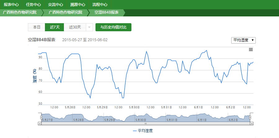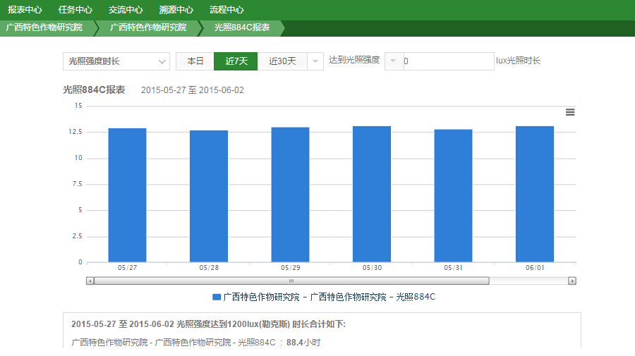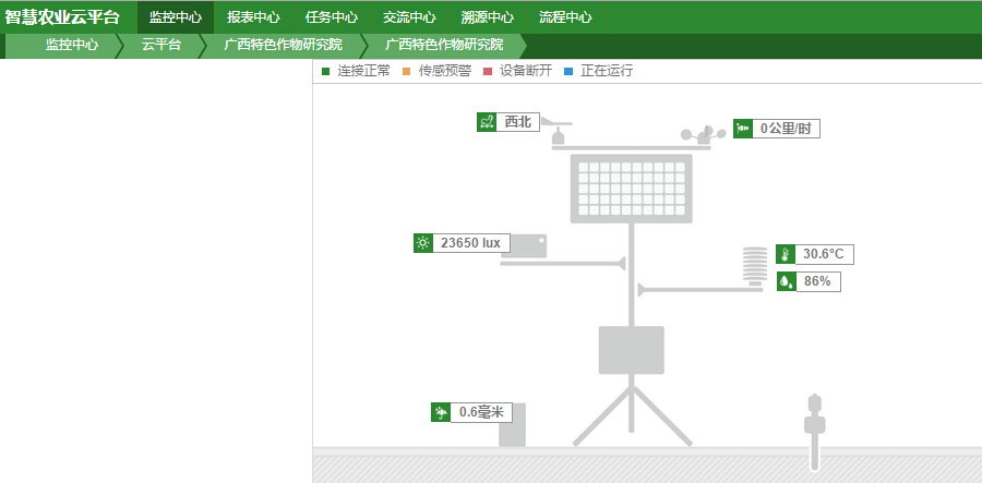 對于農業(yè)科研工作而言,對一線數(shù)據(jù)如作物生長環(huán)境數(shù)據(jù)(光照、降雨量、土壤溫濕度、空氣溫濕度)、作物生長過程數(shù)據(jù)進行采集、分析,是非常重要的工作。為了更好開展科研工作,2013年始,廣西特色作物研究院借助天潤智力智慧農業(yè)云平臺智能農業(yè)監(jiān)控系統(tǒng),進一步加強對作物基礎數(shù)據(jù)的采集分析,以使科研工作更科學精準。
