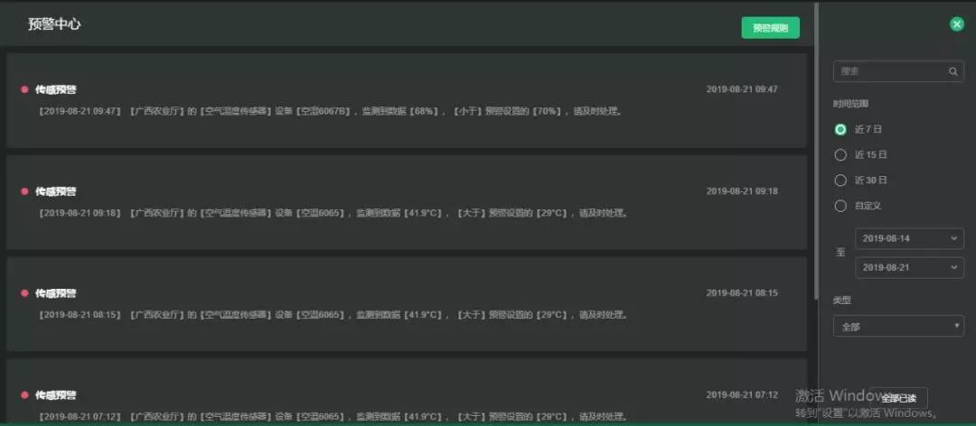 △五谷耘立方系統(tǒng)截圖-傳感器預警記錄