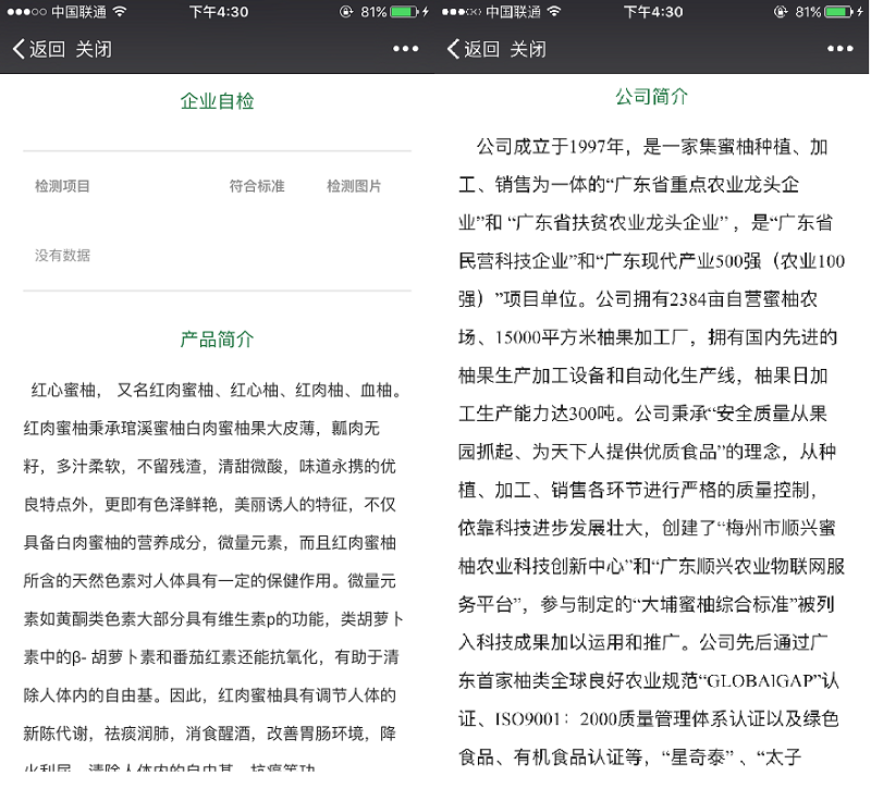 天潤(rùn)智力農(nóng)產(chǎn)品溯源系統(tǒng),給廣東順興種養(yǎng)股份有限公司的每一批制作了唯一的身份(二維碼),完整記錄這蜜柚的品種、產(chǎn)地、種植、肥料使用、生長(zhǎng)環(huán)境等全部信息,消費(fèi)者只要掃描產(chǎn)品二維碼,就能快速地查看農(nóng)產(chǎn)品的詳細(xì)信息。廣東順興種養(yǎng)股份有限公司利用農(nóng)產(chǎn)品溯源平臺(tái),在消費(fèi)者心中,很好地展示了安全、優(yōu)質(zhì)的良好品牌形象。