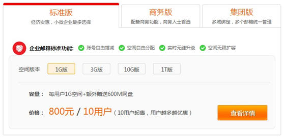 點(diǎn)擊“查看詳情”進(jìn)入到云郵箱標(biāo)準(zhǔn)版購(gòu)買頁(yè)面。如下圖: