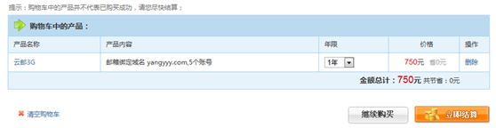 加入購(gòu)物車后點(diǎn)擊“立即結(jié)算”。當(dāng)您付款結(jié)算成功后,您所需要的郵箱產(chǎn)品即購(gòu)買成功。