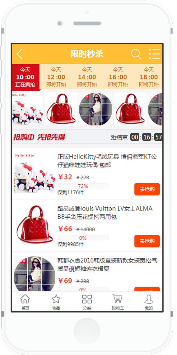 商家開設(shè)秒殺欄目,每個商品限制購買N件,商家提前設(shè)置商品,體現(xiàn)在前臺,商品開始進行倒計時,倒計時結(jié)束,商品開售,開售時間多少分鐘或者多少秒,由商家設(shè)置,例如A產(chǎn)品商家設(shè)置倒計時24小時,前臺開始倒計時,早上十點開售,10點1分25秒結(jié)束,10點-10點1分25秒期間搶到的顧客也要在這個時間段進行付款,沒有付款成功算失敗。