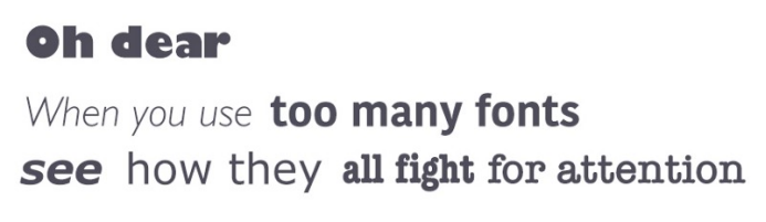 現(xiàn)在互聯(lián)網上90%的信息都是以文字的形式存在,當在一個頁面中,出現(xiàn)的字體超過三種,就會給人一種不專業(yè),不權威,沒有層次結構等感覺,容易影響用戶體驗的效果。