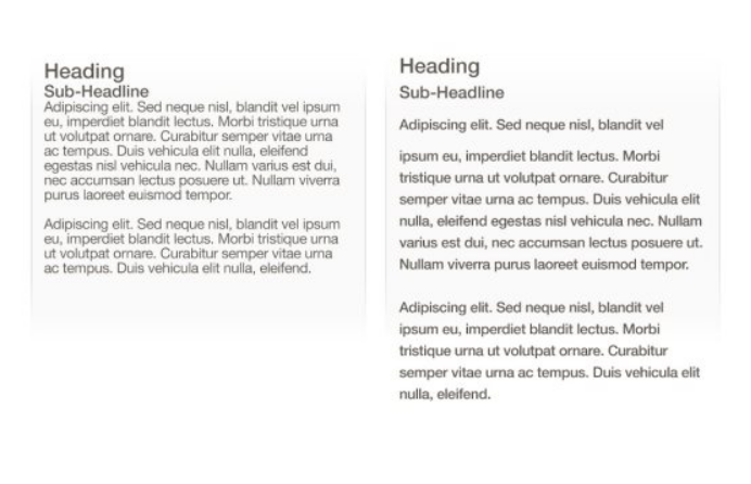 當行文本太短時,就增加了用戶眼睛回轉的頻率,這容易打破用戶的閱讀節(jié)奏,也容易引起用戶的視覺疲勞,從而喪失繼續(xù)往下閱讀的欲望。