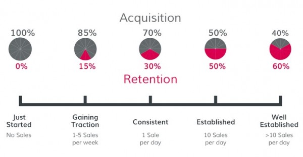 剛起步 當你的商店剛起步時,你需要做的只有一件事情:盡可能的吸引顧客。在這個時間點你的可以完全不用管顧客留存的問題(對不起,因為你沒有顧客…)。你必須盡可能的運用策略來幫助你打增加顧客數量。