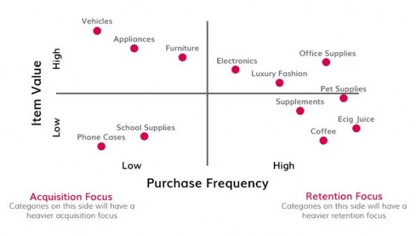 當你的商品具有高單價、購買周期相對較短的特性時,他們會有最高的終生價值。這種類型的商品需要非常注重在建立有效的客戶留存策略。