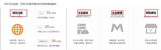 萬網(wǎng)包括域名注冊、主機服務(wù)、企業(yè)郵箱、網(wǎng)站建設(shè)4部分。