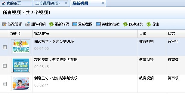 ①恢復(fù)視頻:把刪除的視頻恢復(fù)到“最新視頻”列表里,不用再次轉(zhuǎn)碼。