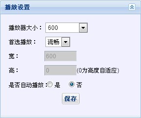 發(fā)布前,可以設(shè)置“播放器大小”、首選播放的“碼率”、是否“自動(dòng)播放”,點(diǎn)擊保存設(shè)置,如下圖;