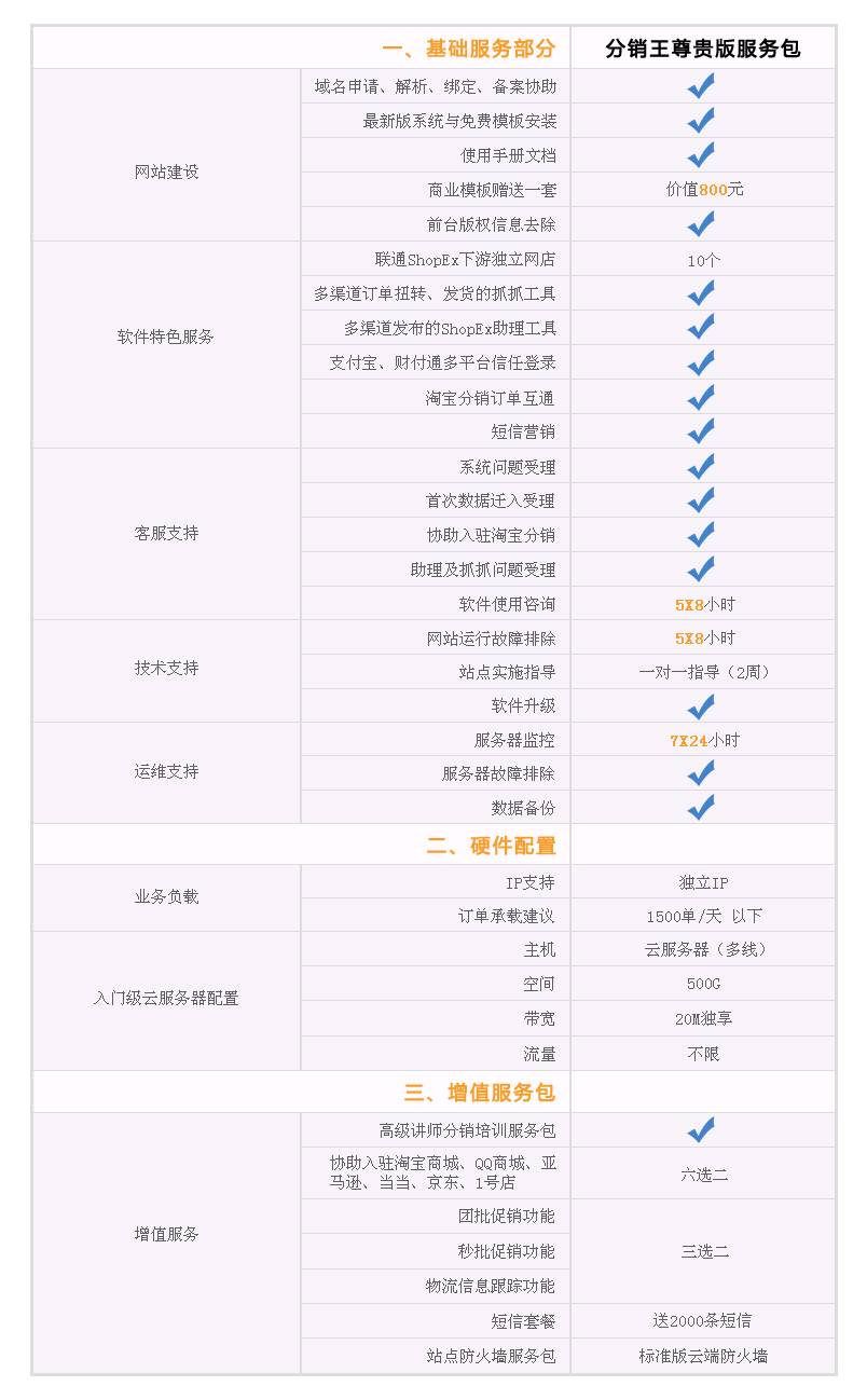 分銷王尊貴套餐適合中型規(guī)模電商,為您提供進階級云服務(wù)器和最新版分銷王網(wǎng)上商店系統(tǒng),能滿足您軟硬件以及運營服務(wù)等多樣化的需求。