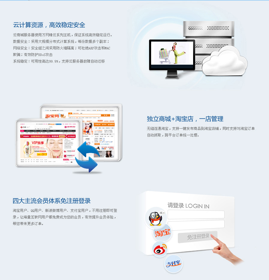 • 云商城服務(wù)器使用輕云系列主機,保證系統(tǒng)高效穩(wěn)定運行。